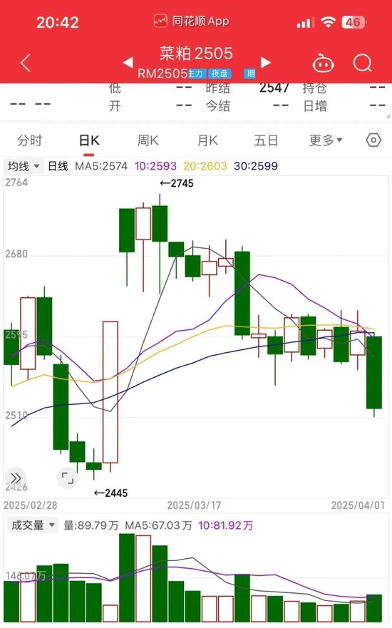昨日,菜粕期货震荡后再次大幅下跌,截至收盘,2505合约已经跌至2520元/吨,较3月初高点下跌8%。